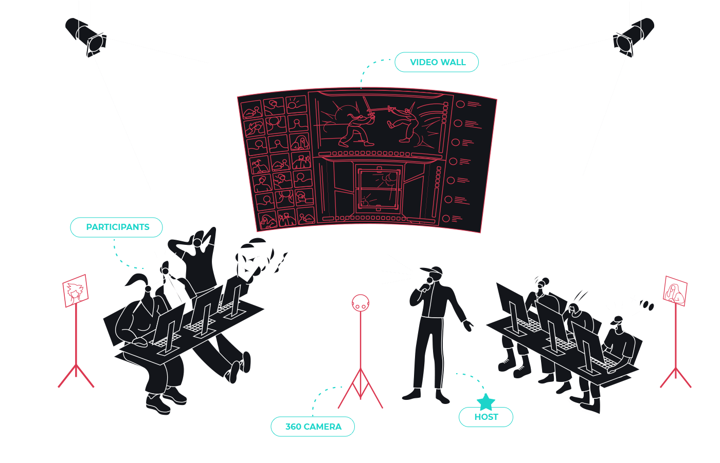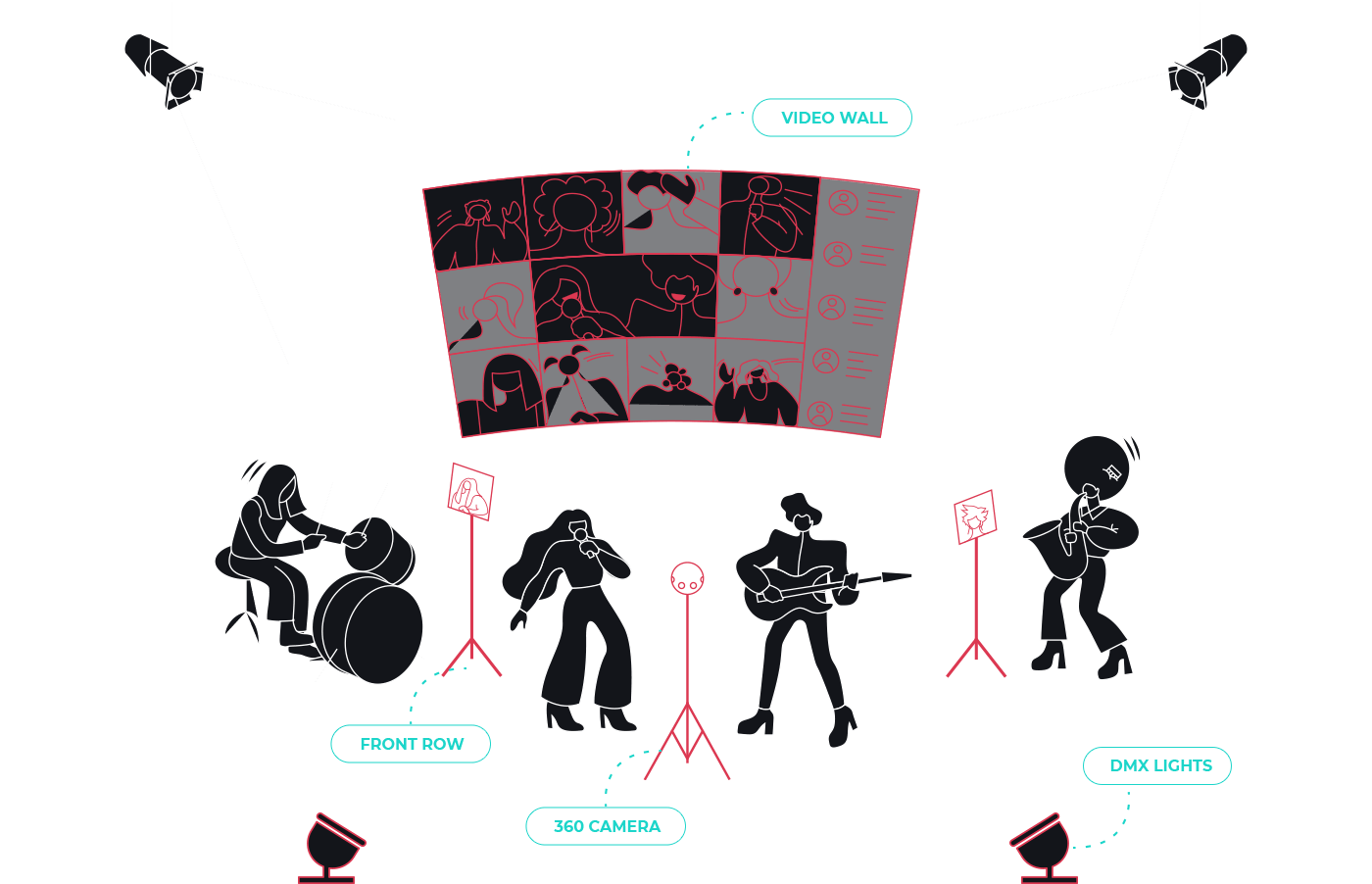 A production has many roles, with Odience Director you create and control the entire event, from planning, to live production, to post event marketing.